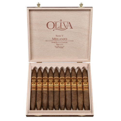 The Oliva V Melanio-figurado is a full-bodied Figurado for experienced smokers, with an Ecuadorian wrapper over a Nicaraguan blend. Its unique shape concentrates the smoke, offering a rich and intense flavor.